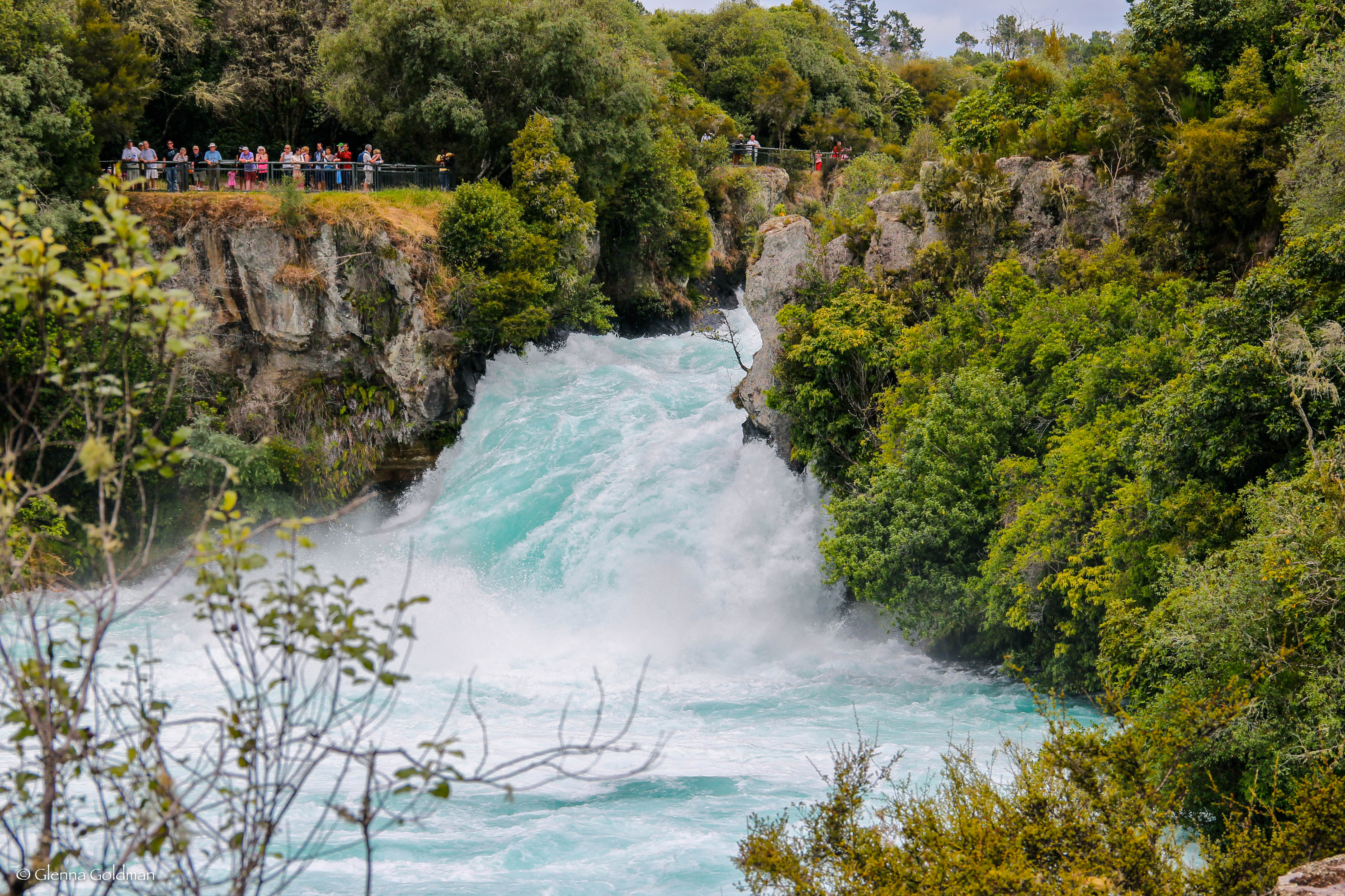 After Rotorua, we stopped at Huka Falls. This is supposedly the most-visited natural attraction in New Zealand. Not sure I believe that, but it was beautiful and very powerful. Wouldn’t want to go jumping off that one!